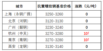 截至午間,國內(nèi)部分市場螺紋鋼(抗震)基價如下:上海市場3250-3260元/噸;北京市場3120-3130元/噸;廣州市場3230-3240元/噸;杭州市場3270-3280元/噸;南京市場3270-3280元/噸;西安市場3130-3140元/噸。環(huán)比來看,截至午間收盤,全國主要市場一線品牌價格多數(shù)不變,少數(shù)調(diào)高。