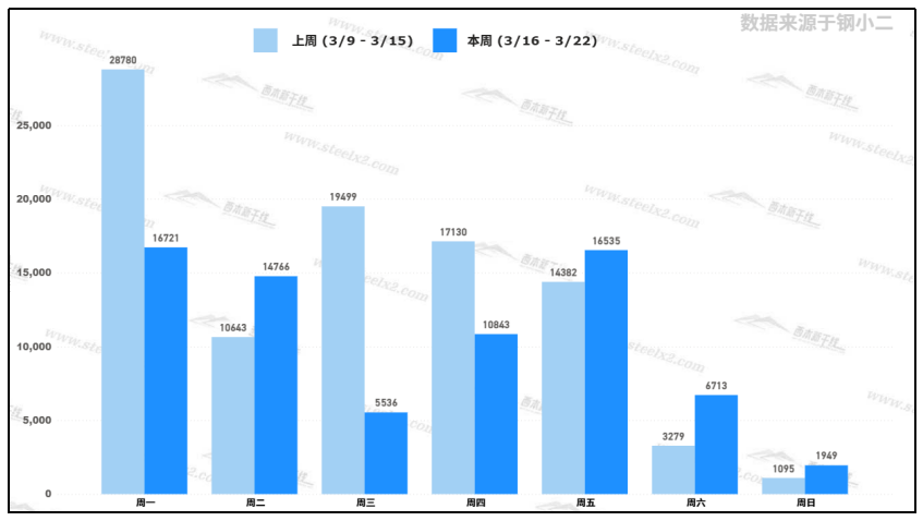 據(jù)鋼小二平臺樣本數(shù)據(jù),3月20日采樣全國工程需求量為16,535噸,較上周五交易日環(huán)比增加明顯。