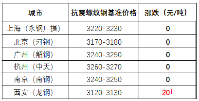 今日行情為多數(shù)橫盤,據(jù)西本跟蹤統(tǒng)計的69個城市建材報價,開盤58%市場持平,28%區(qū)域上漲,午后平盤為主;截至收盤,上海、杭州、南京等地主導(dǎo)資源價格環(huán)比變化0-10元/噸。據(jù)上海市場反饋,今天庫提小廠抗震螺紋鋼高低區(qū)間在3120-3150元,廠提永鋼螺紋鋼基價區(qū)間在3190-3200元/噸。